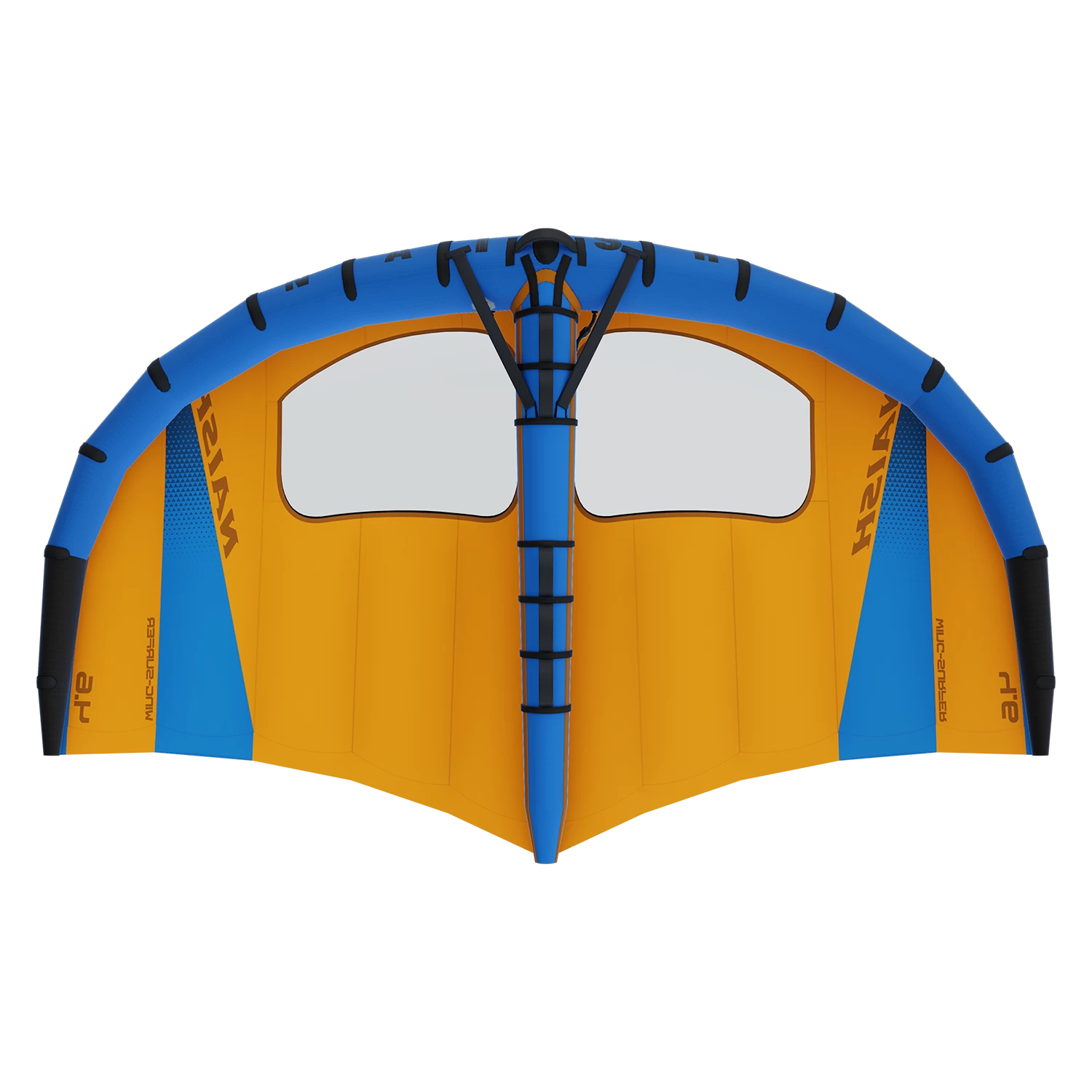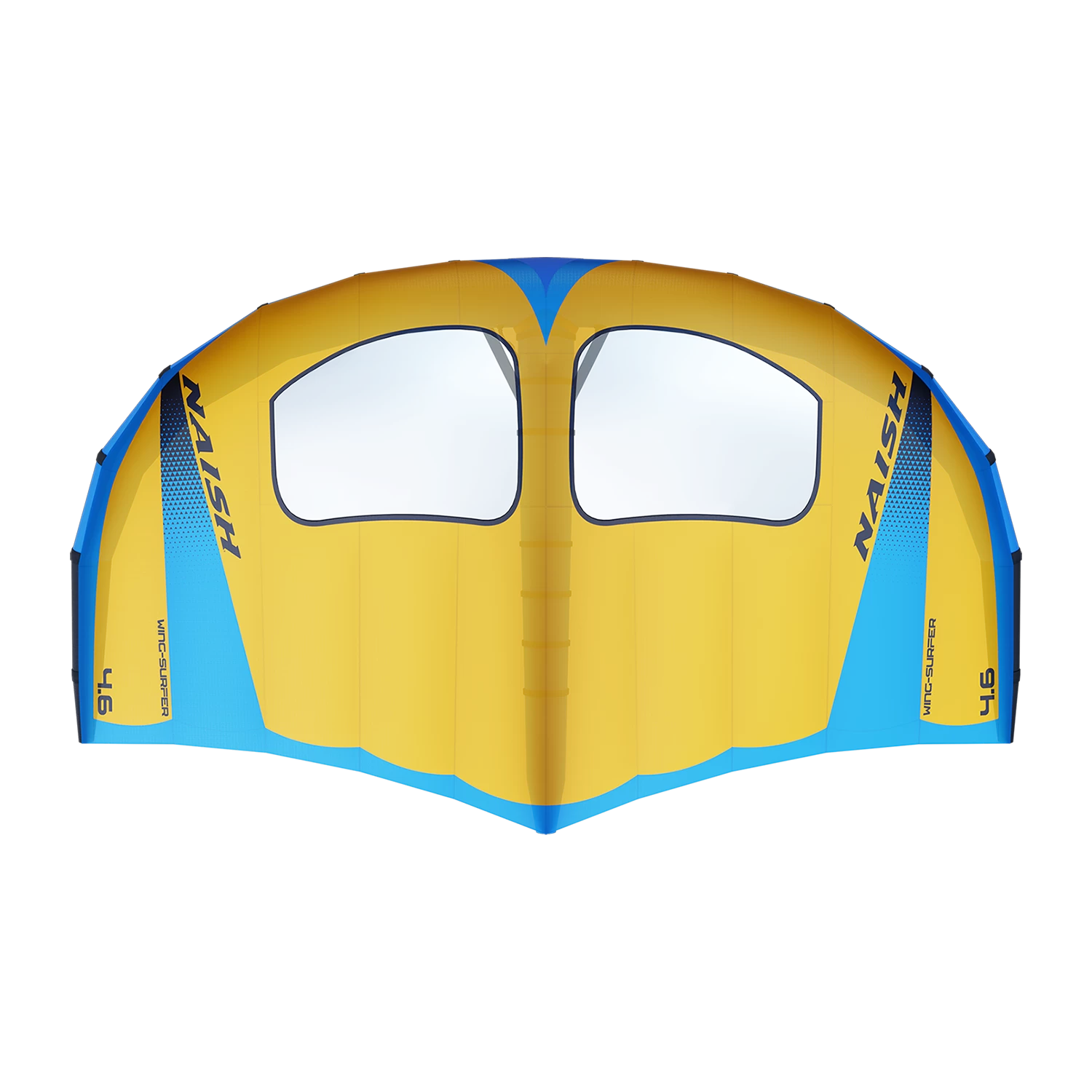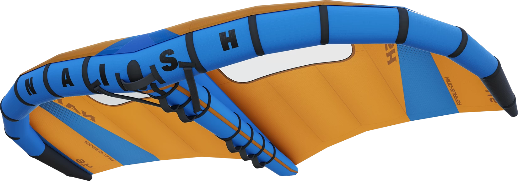 The Naish Wing-Surfer took the world by storm with its introduction in 2019, launching the sport of Wingsurfing into what is now the fastest-growing water sport in the world. The S25 Wing-Surfer took the basic concept to the next level by adding more sizes, better visibility, and improved performance. This season’s all-new Wing-Surfer is packed with design features that will carry this rapidly evolving sport well into the future. We started with the basic outline, refining the leading edge curve of each size wing to maximize drive, balance, and stability in its given wind range. Panel count has been reduced for lighter weight, yet not overly simplified, ensuring that optimum foil shape is retained. Leading edge diameters have been increased in the center of the wing to provide a substantially more rigid airframe, without appearing cartoonishly large as seen on some other wings. In this case, “bigger is better” has limits, and a balance between diameter sizes versus drag, speed potential, weight of leading edge material and internal bladder, etc., must all be taken into consideration. The leading edges taper to the wing tips for a perfect balance of power delivery, stability, twist, and speed. The center strut diameter has also been increased for stiffness and better control in higher winds and jumping. Draft depth has increased substantially and is further forward, providing more locked-in power and increased stability. Everyone, including heavier riders, will especially appreciate the immediate sheet-in-and-go, which provides improved low end and upwind performance, as well as strong wind stability and control. Some riders may find that they will now be able to use a wing that’s one size smaller in the same wind conditions than they would have previously.