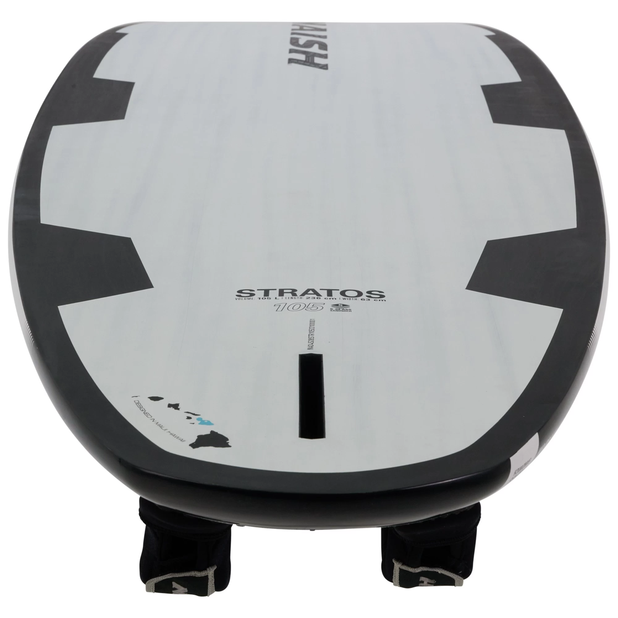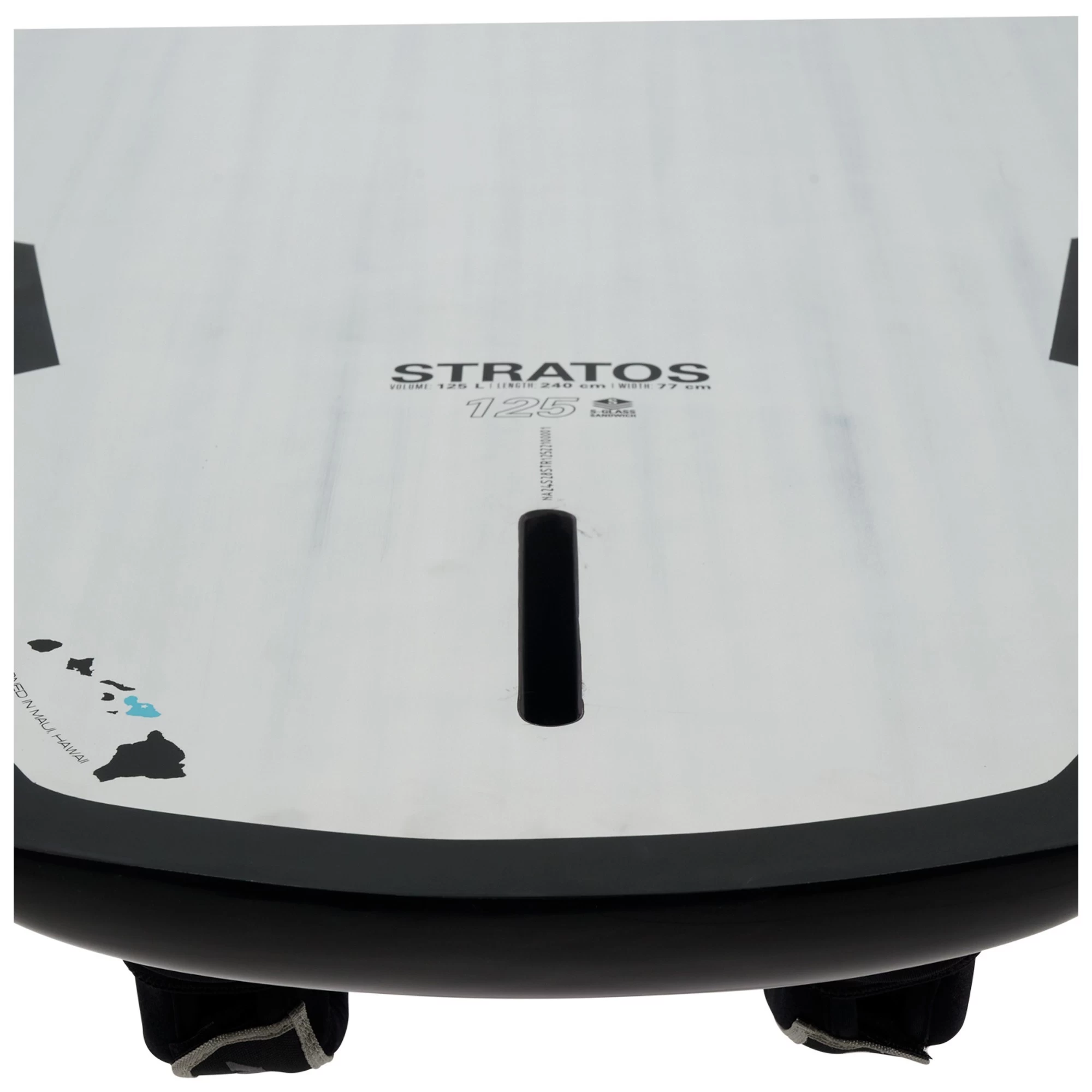 Early planing, speed and control are the essentials of any free ride board and the Stratos line fits those characteristics perfectly. The rocker line accommodates a smooth but swift transition from non planing to planing with little effort. The V-bottom shape makes it easy to ride flat while offering enough release to power up and shift to a more supportive riding style over the fin. Its various foot strap insert positions provide the option to ride in 5th gear out on the rail or further inboard in a more relaxed cruising mode.