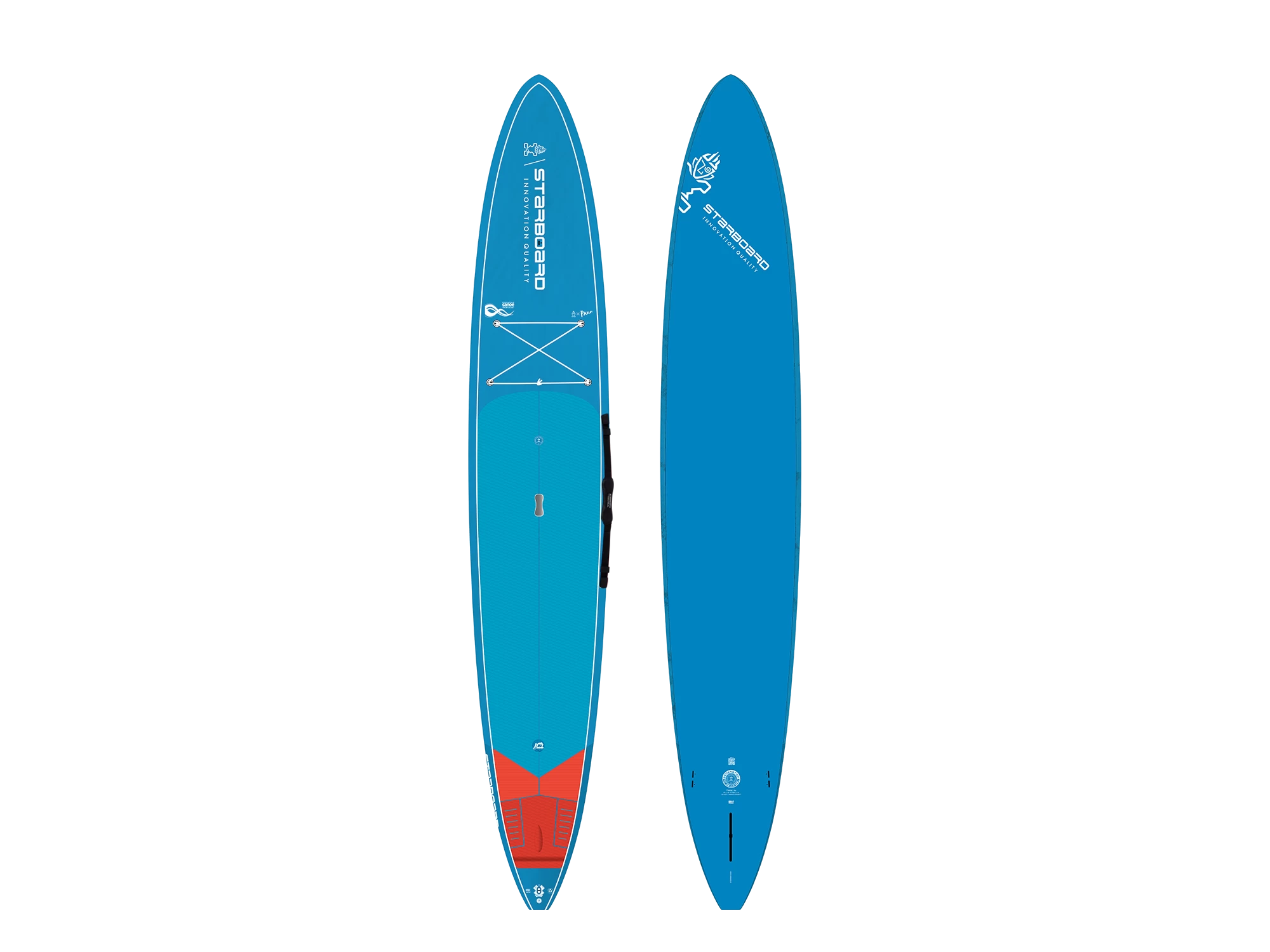 - Die Rail-Dicke wird das gesamte Profil des Boards beibehalten, was ein ausgewogenes Gleiten von der Nose bis zum Tail ermöglicht. Das Generation ist dünner als ein Touring- und Race-Board, wodurch es leichter zu manövrieren und einfacher zu tragen ist.